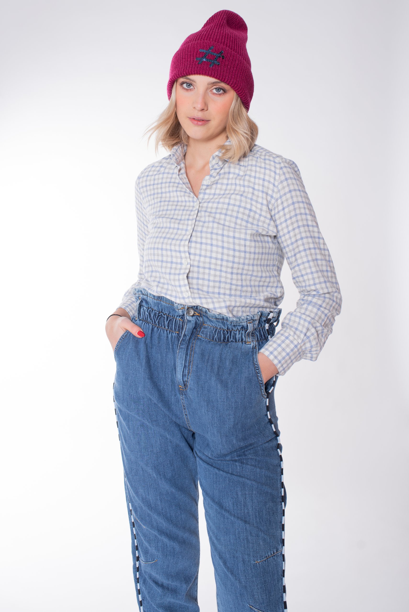 Camicia a quadretti, slim fit, collo aperto polso stondato.