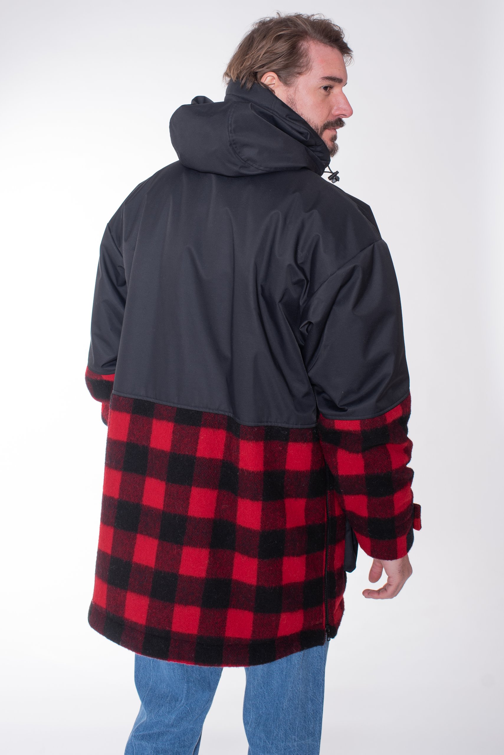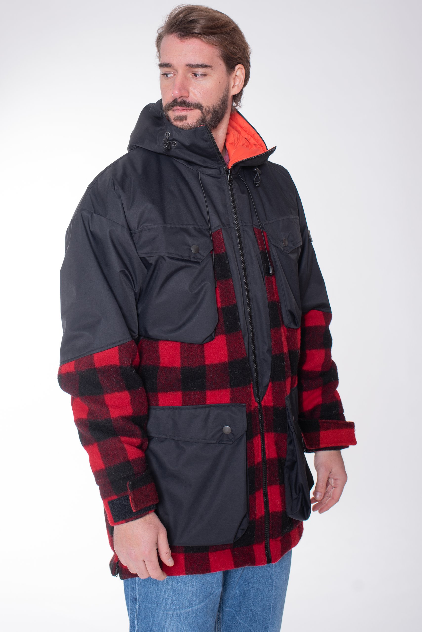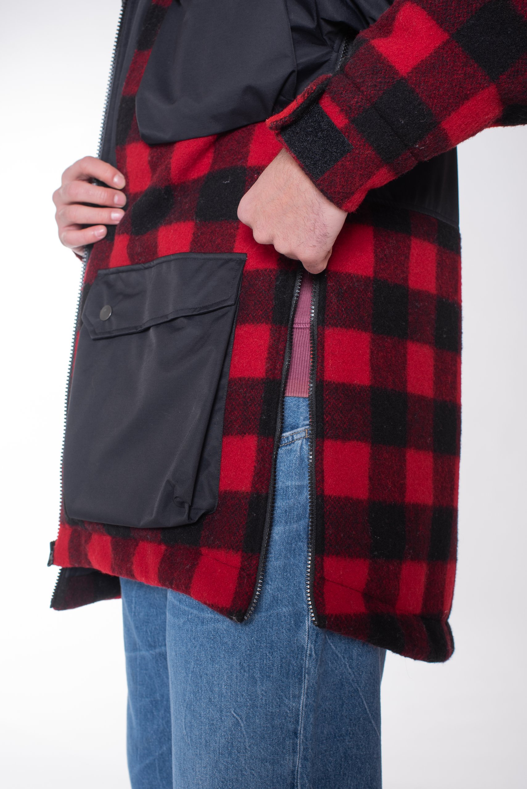 Giacca lunga imbottita, tasche applicate davanti, zip laterali.